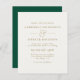 Cette faire-part de mariage minimaliste moderne présente un design simple et élégant. L'avant est une crème avec une typographie or moderne, tandis que l'envers est un vert émeraude riche avec vos initiales dans une typographie or.
