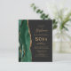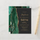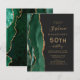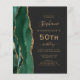 Le bord gauche de cette élégante invitation moderne à la fête du 50e anniversaire comporte une bordure en aquarelle vert émeraude bordée d'une fausse parties scintillant dorée. Le texte personnalisable combine écriture manuscrite dorée, cuivre et polices italiques sur un arrière - plan noir ardoise. L'envers est assorti d'une agate vert émeraude et or.