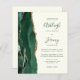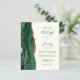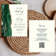 Économisez le coût d'impression et d'envoi de cartes RSVP séparées avec cet élégant faire-part de mariage tout-en-un moderne. Le bord gauche est doté d'une bordure en aquarelle vert émeraude, recouverte d'une fausse parties scintillant dorée. Le texte personnalisable combine écriture manuscrite verte, copperplate et polices italiques sur un arrière - plan ivoire. L'envers offre de l'espace pour les détails mariages sur un arrière - plan en ivoire solide, ainsi qu'un code QR que les invités peuvent scanner pour visiter votre site Web et RSVP.