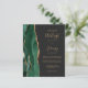 Économisez le coût d'impression et d'envoi de cartes RSVP séparées avec cet élégant faire-part de mariage tout-en-un moderne. Le bord gauche est doté d'une bordure en aquarelle vert émeraude, recouverte d'une fausse parties scintillant dorée. Le texte personnalisable combine écriture manuscrite dorée, cuivre et polices italiques sur un arrière - plan noir ardoise. L'envers offre de l'espace pour les détails mariages sur un arrière - plan noir en ardoise solide, ainsi qu'un code QR que les invités peuvent scanner pour visiter votre site Web et RSVP.