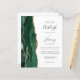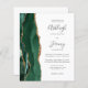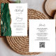 Économisez le coût d'impression et d'envoi de cartes RSVP séparées avec cet élégant faire-part de mariage tout-en-un moderne. Le bord gauche est doté d'une bordure en aquarelle vert émeraude, recouverte d'une fausse parties scintillant dorée. Le texte personnalisable combine écriture manuscrite grise au fusain, cuivre et polices italiques sur un arrière - plan blanc. L'envers offre de l'espace pour les détails mariages, ainsi qu'un code QR que les clients peuvent scanner pour visiter votre site Web et RSVP.