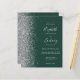 Le bord gauche de cette élégante faire-part de mariage moderne est orné d'une bordure en faux parties scintillant argenté. Le texte personnalisable combine écriture gris argenté pâle, copperplate et polices italiques sur un arrière - plan vert émeraude. L'envers présente un design vert émeraude et argenté assorti.