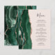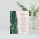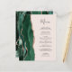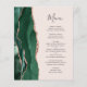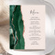 Le bord gauche de cet élégant menu mariage moderne comporte une bordure d'aquarelle vert émeraude bordée d'une parties scintillant d'or rose imitant. Le texte personnalisable combine un script d'écriture manuscrite grise de fusain et des polices de cuivre sur un arrière - plan rose vif. L'envers est assorti d'une agate d'or vert émeraude et rose.