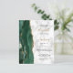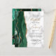 Le bord gauche de ce faire-part de mariage moderne élégant présente une bordure d'agate à l'aquarelle émeraude vert, garnie de paillettes dorées fausses. Le texte personnalisable combine une écriture manuscrite de couleur or avec des polices copperplate et italique noires sur un fond de marbre gris et blanc. Le verso présente un motif agate vert et or assorti.