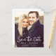 Budget Moderne et Élégant Script manuscrit Portrait Photo verticale Enregistrer la carte Mariage date. La carte d'invitation à la date de sauvegarde comprend une typographie chic et élégante avec un design simple et minimaliste sur un arrière - plan blanc que vous pouvez ajouter votre photo de fiançailles customisé à.