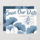 Annoncez votre mariage avec ce magnifique design moderne de feuilles de gingko. Feuillage d'aquarelle bleu et blanc créé pour votre occasion spéciale. Facile à customiser avec vos informations uniques.