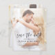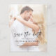 Budget Transparence couvrant photo personnalisée sur le devant et le dos de l'élégant et moderne Save the Date Wedding Invitations - comprend une belle et élégante typographie de script pour la célébration spéciale du mercredi.