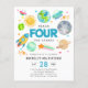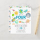 Espace Extérieur Moderne Galaxie Lune Rocket Alien spatial Enfant Atteindre QUATRE étoiles 4e anniversaire Invitation