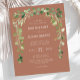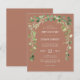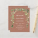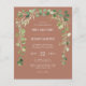 Cet élégant faire-part de mariage rustique dispose d'une arche de verdure d'eucalyptus d'aquarelle délicate. Personnalisez-le avec les noms du couple en blanc sans serif police sur un arrière - plan en terre cuite. Le dos de la carte est en terre cuite solide.