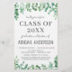 Personnalisez cette Eucalyptus Moderne Aquarelle Vert Printemps Classe de 2023 Graduation Invitation sur arrière - plan blanc avec votre message et détails. Cette invitation élégante comprend un feuillage botanique moderne et élégant avec une typographie stylisée parfaite pour les fêtes de fin d'études supérieures ou secondaires.