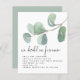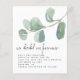 Eucalyptus Décidé sur Forever Script Enregistrer La Date. Un prix économique PETIT 4,5 po x 5,6 po alternatif. Disponible dans un STOCK SEMI-GLOSS 110 lb CARD qui est l'option par défaut (plus épais pour les invitations), OU un STOCK SATIN FINISH 80 lb THINNER PAPER (idéal pour les boîtiers). Les enveloppes sont en option et légèrement plus grandes que la taille de la carte. Une aquarelle artsy vert eucalyptus design et l'ensemble informel écriture manuscrite pour l'en-tête. Le reste du texte que vous pouvez facilement personnaliser.