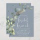Budget Eucalyptus Verdure Dusty Bleu Succulent Aquarelle Botanique Printemps Fête des mariées de mariage - Brunch nuptiale Invitations sur arrière - plan blanc - comprend belle et élégante typographie script avec feuilles botaniques modernes et la verdure pour la fête spéciale Mariée à être.