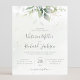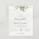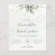 Belle faire-part de mariage avec aquarelle eucalyptus et feuilles d'or.