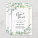 Présentant nos nouvelles invitations à la douche nuptiale, parfait pour le couple moderne à la recherche d'une touche d'élégance et de charme botanique. Les invitations présentent une belle typographie moderne et est magnifiquement ornée de feuilles d'eucalyptus aquarelle, une verdure étonnante qui le rend adapté à toutes les saisons - que vous planifiez un mariage de printemps, d'été, d'automne ou d'hiver. Les touches dorées et subtiles ajoutent une touche de luxe à l'ensemble, ce qui en fait un endroit idéal pour un élégant jardin, plein air ou mariage jardin. Avec son ambiance boho-chic et son élégance intemporelle, ces invitations à la douche nuptiale ou à la douche de couple sont parfaites pour le couple qui cherche à incorporer une certaine beauté naturelle à leur grand jour. Que vous planifiez un mariage classique ou d'inspiration bohème, ces invitations à la douche nuptiale feront certainement une déclaration. Invitation vos proches dans le style et donner le ton pour votre grand jour avec ces invitations charmantes et d'inspiration botanique. Différentes configurations sont disponibles. Un code de numérisation qr peut être ajouté au dos pour les couples avec un site mariage.