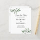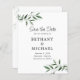 Budget Delicate Eucalyptus Feuilles avec Shadow QR Code Enregistrer la date Annonce... La façade de notre carte botanique abordable Save the Date présente des branches délicates de feuilles d'eucalyptus verts agrémentés de leur ombre semi-transparente. Nichés entre les branches sont vos détails de faire-part mariages en italique élégant et en serif typographie. Au dos de la carte se trouvent votre adresse de retour, l'URL du site mariage, et un exemple de code QR graphique que vous pouvez facilement remplacer par votre propre code QR du site mariage - directement sur le modèle de personnalisation. Tous les exemples de texte des deux côtés de la carte peuvent être facilement révisés avec vos propres détails sur le modèle de personnalisation.