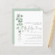 Un rapport qualité-prix BUDGET alternative sur une taille plus petite 4,5 x 5,6" semi-brillant poids 110lbs, qui est d'une épaisseur similaire à une carte postale (cependant ne convient pas à l'utilisation comme carte postale.) VEUILLEZ NOTER qu'il y a UN invitation par feuille. Budget Eucalyptus Futur Mme l'Invitation Fête des mariées. The Future Mrs est dans un élégant script et le reste du texte que vous pouvez facilement personnaliser. Les feuilles d'eucalyptus à aquarelle descendent sur le côté gauche.