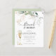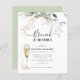 Beauty and fun with this brunch & bubbly Bridal Shower champagne lunch on invite dined with whised with soft eucalyptus branches gilded gold leaves, and a minty green backdrop on the back of the card. Easily customize with the bride-to-be name and other important information.
