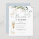 Élégant et amusant avec ce brunch & Fête des mariées mousseuse invitation déjeuner-déjeuner au champagne conçu avec whispy doux branches d'eucalyptus, feuilles dorés or, et un bleu doux poussiéreux au dos de la carte. Customisez facilement avec le nom de la future mariée et d'autres informations importantes.