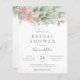 Belle invitation à la douche nuptiale avec eau rose fleurie eucalyptus et feuilles d'or.