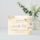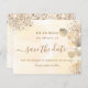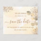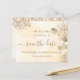 Un arrière - plan doré à l'eau décoré de feuillage d'eucalyptus doré et de poussière de parties scintillant en faux or. Personnalisez et ajoutez la date, le lieu et vos noms. Lettres de couleur dorée. Le texte : Save the Date est écrit avec un grand script de style à la main tendance.