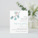 Invitation du Soirée Budget Pastel Eucalyptus Mariage. Un prix économique PETIT 4,5 po x 5,6 po alternatif. Disponible dans un STOCK CARTE SEMI GLOSS 110 lb qui est l'option par défaut (recommandé pour les invitations), OU un STOCK PAPIER THINNER SATIN FINISH 80 lb (idéal pour les boîtiers). Les enveloppes sont en option et légèrement plus grandes que la taille de la carte. Une branche moderne de feuilles d'eucalyptus turquoises et roses est en haut à gauche et le texte aligné à droite. Le Soir Party est dans un script de style manuscrit, et le reste du texte que vous pouvez facilement personnaliser. Un turquoise de coordination est à l'arrière, que vous pouvez modifier si vous le souhaitez via l'option customiser plus loin.