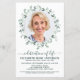 Funérailles Modernes Du Mémorial Eucalyptus / Célébration De L'Invitation À Vie. Ces invitations funéraires sympathiques présentent une photo dans un modèle de couronne d'eucalyptus vert. Personnalisez cette célébration de l'invitation funéraire de la vie avec vos proches photos, nom & dates, détails de l'événement. DROIT D'AUTEUR © 2021 Judy Burrows, Black Dog Art - Tous droits réservés. Budget Eucalyptus Photo Célébration De L'Invitation De Vie