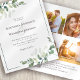 Offrez-vous un cadre romantique pour votre journée de mariage grâce à ce design moderne et abordable avec des feuilles d'eucalyptus aquarelle. Il y a de l'espace sur le dos pour quatre photos et votre code QR orientant les invités vers votre site mariage. **VEUILLEZ LIRE AVANT D'ACHETER** Notre petite gamme de papeterie économique mesure 4.5" x 5.6" et s'intègre dans une enveloppe A6, qui sont disponibles en toutes sortes de couleurs dans votre magasin de papeterie local ou vous pouvez ajouter des blancs à votre commande avant de passer votre commande. Chaque feuille est une invitation - aucune découpe n'est nécessaire. Le carton est d'un blanc éclatant avec une finition semi-brillante et un poids de 110lbs qui convient aux invitations. Nous NE VOUS conseillons PAS de choisir l'option papier satiné car il s'agit d'un papier de 80lb beaucoup plus mince, qui est plus proche des pages de magazines que des cartons. Si vous préférez une invitation classique de taille 5x7 imprimée sur un carton de 120lb avec une finition mate, vous pouvez transférer cette conception vers une carte plate en utilisant les options de conception de transfert. Les cartes plats ne sont pas dans la gamme de budget, mais vous avez un plus grand choix de tailles et de options de cartons et elles expédient avec des enveloppes. La forme et la taille qui conviennent le mieux à la conception apparaîtront dans les options de transfert de conception. Si vous modifiez la forme ou la taille ou choisissez un autre produit et que la conception est recadrée de quelque façon que ce soit ou ne s'affiche pas correctement sur la page, vous devrez utiliser le service de design en direct pour que quelqu'un vous adapte la mise en page, à moins que vous ne soyez à l'aise de le faire vous-même. Votre commande va directement aux imprimantes afin que ce que vous voyez à l'écran soit ce qui vous sera imprimé et expédié. Dans cet esprit, veuillez également triple-vérifier pour toute erreur d'orthographe ou information incorrecte avant de passer votre commande. Les photographies des modèles sont à des fins d'illustration et peuvent être changées en votre propre nom.