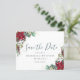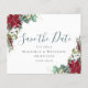 Faites savoir à vos amis et à votre famille que vous avez fixé une date pour votre mariage avec cette belle carte "Save the Date" hivernale à l'aquarelle avec eucalyptus et poinsettia.