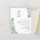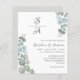 Design botanique élégant en aquarelle. Ce design unique présente eucalyptus et verdure dans le vert sauge et bleu poussiéreux. Tout le texte est modifiable pour répondre à vos besoins avec la fonctionnalité ajoutée d'un monogramme en script classique.