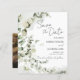 Annoncez votre journée spéciale avec un magnifique eucalyptus budget enregistrer la carte de date! Sage greenery se marie parfaitement avec une aquarelle gracieuse, créant votre propre look unique et étonnant. Ajoutez une photo personnalisée de vous deux pour rendre votre carte encore plus spéciale. Faites savoir à vos invités qu'ils ne voudront pas manquer votre mariage avec l'une de ces cartes uniques à l'exception des cartes de dates.