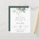 Belle invitation de brunch nuptiale avec des eucalyptus aquarelles et des feuilles d'or.