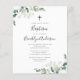 Une invitation moderne à la verdure eucalyptus baptisme. **VEUILLEZ LIRE AVANT D'ACHETER** Notre petite gamme de papeterie économique mesure 4.5" x 5.6" et s'intègre dans une enveloppe A6, qui sont disponibles en toutes sortes de couleurs dans votre magasin de papeterie local ou vous pouvez ajouter des blancs à votre commande avant de passer votre commande. Le carton est d'un blanc éclatant avec une finition semi-brillante et un poids de 110lbs qui convient aux invitations. Nous NE VOUS conseillons PAS de choisir l'option papier satiné car il s'agit d'un papier de 80lb beaucoup plus mince, qui est plus proche des pages de magazines que des cartons. Si vous préférez une invitation classique de taille 5x7 imprimée sur un carton de 120lb avec une finition mate, vous pouvez transférer cette conception vers une carte plate en utilisant les options de conception de transfert. Les cartes plats ne sont pas dans la gamme de budget, mais vous avez un plus grand choix de tailles et de options de cartons et elles expédient avec des enveloppes. La forme et la taille qui conviennent le mieux à la conception apparaîtront dans les options de transfert de conception. Si vous modifiez la forme ou la taille ou choisissez un autre produit et que la conception est recadrée de quelque façon que ce soit ou ne s'affiche pas correctement sur la page, vous devrez utiliser le service de design en direct pour que quelqu'un vous adapte la mise en page, à moins que vous ne soyez à l'aise de le faire vous-même. Il n'y a pas de vérification manuelle ou d'intervention entre le placement de la commande et l'impression, donc ce que vous voyez à l'écran est ce qui vous sera imprimé et expédié. Dans cet esprit, veuillez également triple-vérifier pour toute erreur d'orthographe ou information incorrecte avant de passer votre commande.