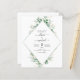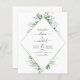 Eucalyptus Verdure Botanique et Vert et Or Géométrique Aquarelle Printemps Invitations sur arrière - plan Blanc - comprend belle et élégante typographie script avec feuilles botaniques modernes et verdure pour la célébration spéciale de mariage.