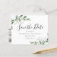 Faites savoir à vos amis et à votre famille que vous avez fixé une date pour votre mariage avec cette belle carte "Save the Date" à l'aquarelle et au eucalyptus. Ces cartes font partie d'une gamme de papeterie de mariage coordonnée disponible dans notre magasin. La photographie du modèle est à des fins d'illustration et peut être remplacée par l'une des vôtres.