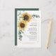 Créez une carte de Faire-part de mariage de tournesol Eucalyptus Budget moderne avec ce modèle mignon avec un beau bouquet fleuri rustique, cadre d'effet d'or géométrique, avec une typographie simple moderne. CONSEIL : Des cartes de suite mariage comme RSVP, des programmes de mariage, des bannières, des tapisseries, des étiquettes cadeaux, des affiches, et d'autres cadeaux et cadeaux de mariage sont disponibles dans la collection ci-dessous avec ce design.