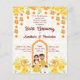 Budget Haldi Indien pré-mariage mignon couple hindou fleurs jaunes invitation modèle.