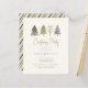 Invitation vos amis et les proches à un dîner de Noël avec cette élégante invitation économique avec des pins de Noël aquarelle et un arrière - plan vert vert monochrome rayé.