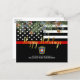 Envoyez Joyeux voeux de Noël à vos amis, aux entreprises' , aux pompiers et aux services d'incendie de votre communauté avec cette carte de Noël unique Thin Red Line Fire Department - American Flag aux couleurs du drapeau des pompiers, noir et rouge moderne avec des feuilles saints et des baies. Personnalisez avec le logo, le message et le service du service incendie. Ces cartes postales budgétaires de noël doivent être postées comme des cartes postales surdimensionnées, de sorte qu'elles peuvent encourir des frais d'affranchissement standard, mais elles n'ont pas besoin d'une enveloppe ou d'une étiquette d'adresse de retour. DROIT D'AUTEUR © 2020 Judy Burrows, Black Dog Art - Tous droits réservés. Budget Fire Department Thin Red Line Holiday Card