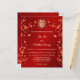 Branches de fleurs de cerisier rouges, deux papillons et un double symbole de bonheur en or sur fond rouge.