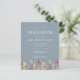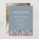 Une belle bordure florale d'aquarelle de fleurs sauvages décore le bord inférieur de cette invitation branchée de fête de graduation boho. Customisez le texte blanc sur un arrière - plan bleu poussiéreux avec le nom du diplômé en écriture manuscrite ; l'année scolaire et de classe en sans serif ; et la date, le lieu et les détails RSVP en police serif. Remplacez facilement l'image de l'échantillon au dos par une photo verticale de votre diplômé.