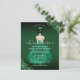 Cette invitation de Quinceañera élégante et économique présente une fille en robe émeraude verte avec des accents floraux verts et or. Le dos présente un motif de rose verte et or. Facile à personnaliser en cliquant sur "Personnaliser".