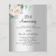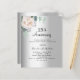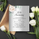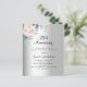 Un arrière - plan faux argenté. Décorée d'une floraison blanche, d'une fleur de pivoine et d'une verdure d'eucalyptus couleur verte à l'eau. Personnalisez et ajoutez vos noms et les détails. 1 feuille = 1 invite imprimé bord à bord.