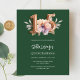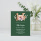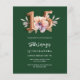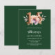 Une invitation moderne, élégante et glamour pour une Quinceañera. Un arrière - plan vert émeraude, décoré d'une fleur rose et pêche à l'eau. Le nom est écrit avec un script de style à la main vert moderne. Personnalisez et ajoutez les détails de votre fête. Le numéro 15 est écrit avec une police de style ballon, script. 1 feuille = 1 invite imprimé bord à bord.