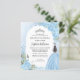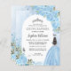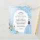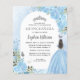 Floral Dusty Blue Silver Grey Princess Gown Robe Parties scintillant Étincelle Tiara Crown Butterfly 15e anniversaire Quinceanera Invitation