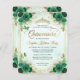 Glam moderne Floral Botanique Emeraude Vert Or Tiara Parties scintillant étincelle RSVP Anniversaire Quinceañera Invitation