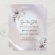 Notre luxueuse carte économique Save the Date présente une texture perle chatoyante décorée de délicates fleurs de rose et d'anémones. Dans le bouquet fleuri se trouvent des feuilles blush pastel et des branches d'eucalyptus nacrés. L'ensemble est un peu éthérée et très romantique. L'illustration de texte "Enregistrer la date" est définie dans une police de script charmant et tous les autres textes à l'avant et à l'arrière de la carte peuvent être facilement personnalisés par vous sur le modèle. Ce design Save the Date est également disponible sous forme de carte postale, de carte à plat 5 x 7 et d'aimant. VEUILLEZ NOTER : Si vous souhaitez acheter des enveloppes qui correspondent au format papier "budget", il vous suffit de cliquer dans le menu déroulant "Sélectionnez une option d'enveloppe".