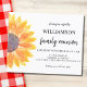 Invitation votre famille à leur Reunion familiale avec cette invitation fleurie budget. Il dispose d'un tournesol aquarelle dans les tons jaune et orange. Facilement personnalisable avec votre nom et vos détails. Aquarelle originale © Michele Davies.