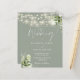 Cet élégant faire-part de mariage vert sauge, avec de jolies lampes à cordes et une verdure fleurie, peut être personnalisé avec vos informations en typographie chic avec vos initiales monogrammes au verso. Conçu par Thisisnotme©