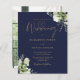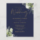Cet élégant faire-part de mariage feuille de verdure botanique budget peut être personnalisé avec vos informations en typographie or chic sur un arrière - plan bleu marine et avec votre photo spéciale au verso. Conçu par Thisisnotme©