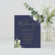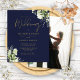 Budget Floral Navy Blue Gold Photo Wedding Invitat